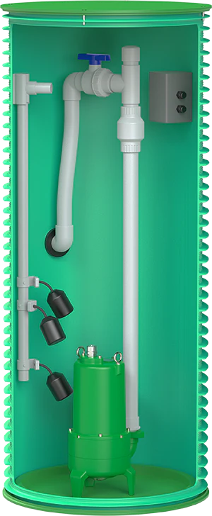 AFS GRUB or Grinder Residential Underground Basin offers professional grade durable construction. Built to be reliable, serviceable and extremely easy to install. Designed to be located outside the home or building structure, AFS GRUB packages provide a superior alternative to messy in-basement systems.